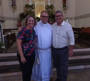 Neste último domingo (18), Zezinho e Sandra Campanella tiveram o prazer de estar presentes na Solenidade da Assunção da Bem Aventurada Virgem Maria, que aconteceu, na Paróquia Nossa Senhora Aparecida da cidade de Terra Roxa, a Missa em Ação de Graças pelo Jubileu dos 25 anos de Ordenação Presbiteral do Padre Marcelo Adriano Cervi. A Celebração Eucarística foi presidida por Dom Eduardo Pinheiro da Silva, Bispo Diocesano, e concelebrada por Padres da Diocese e por Padres que exercem várias responsabilidades ligadas ao Movimento Apostólico de Schoenstatt no Brasil e no exterior.